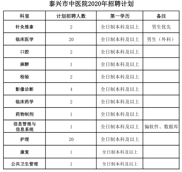 因業(yè)務(wù)發(fā)展需要,泰興市中醫(yī)院現(xiàn)面向社會公開招聘臨床、護理、醫(yī)技、藥學(xué)、信息管理等崗位人才若干名,待遇從優(yōu),具體人員信息見下表: